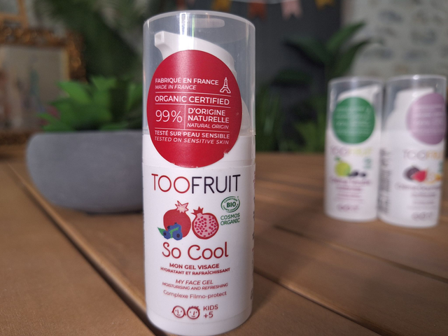 Soin hydratant, rafraîchissant et apaisant, notre gel hydratant So Cool certifié bio trouvera naturellement sa place dans la routine visage de votre enfant. Adapté à la peau des plus jeunes dès 5 ans, notre gel au parfum gourmand de grenade et de myrtille est idéal pour les préadolescents avec un début de zone T (front, nez, menton) et une peau à tendance grasse.